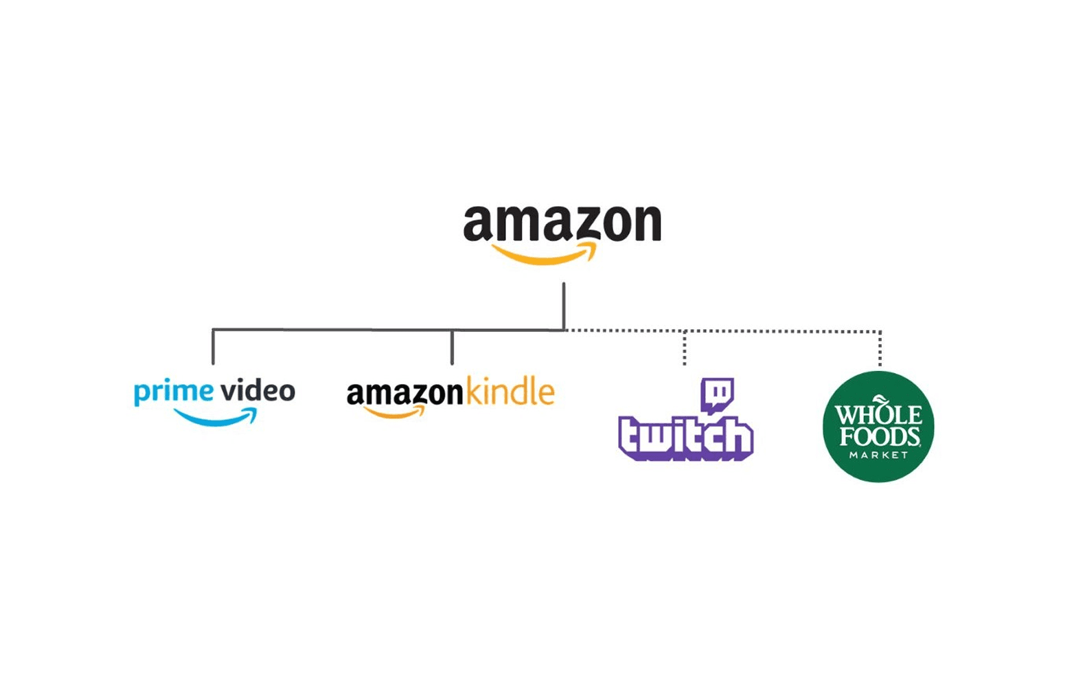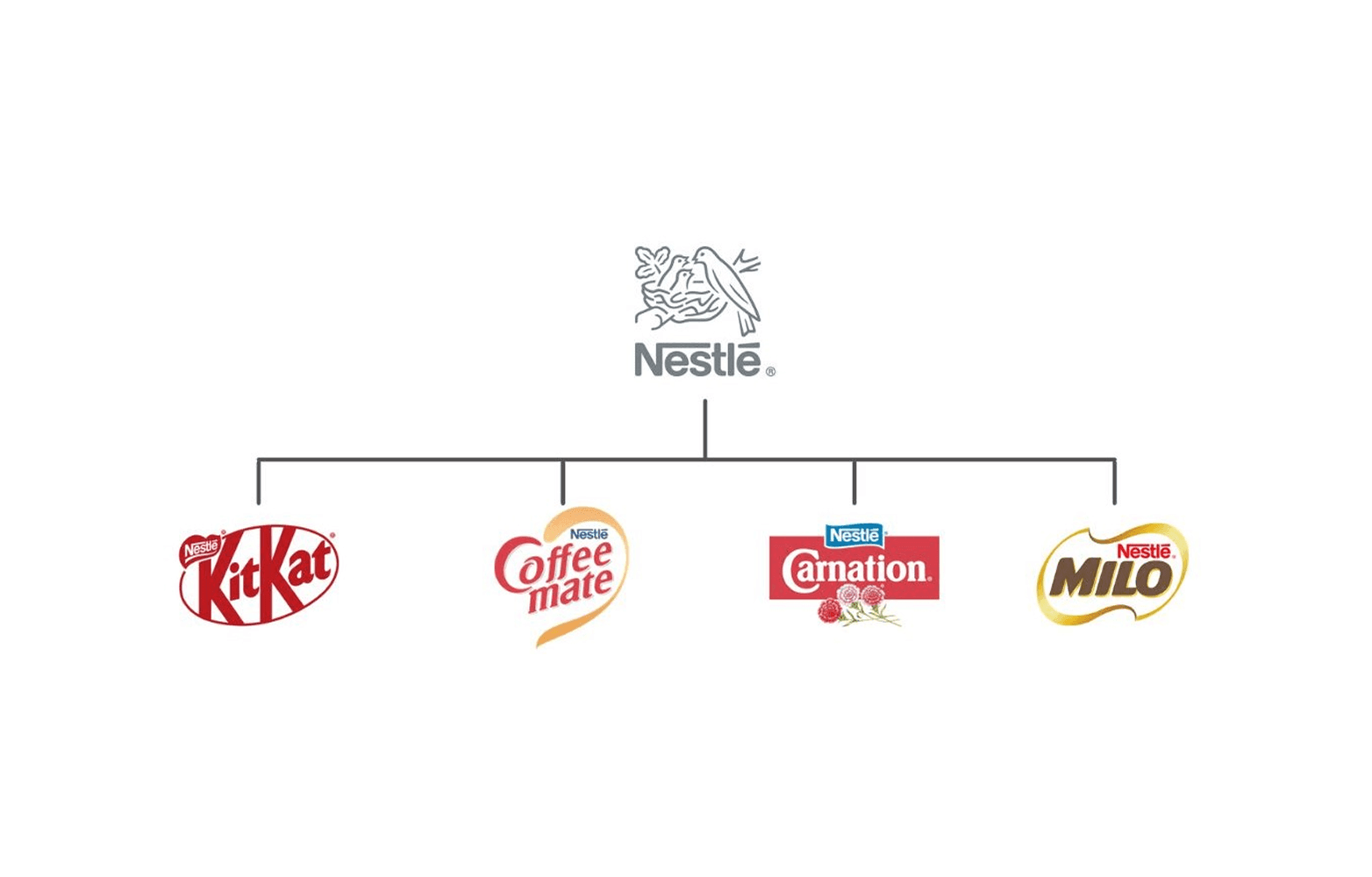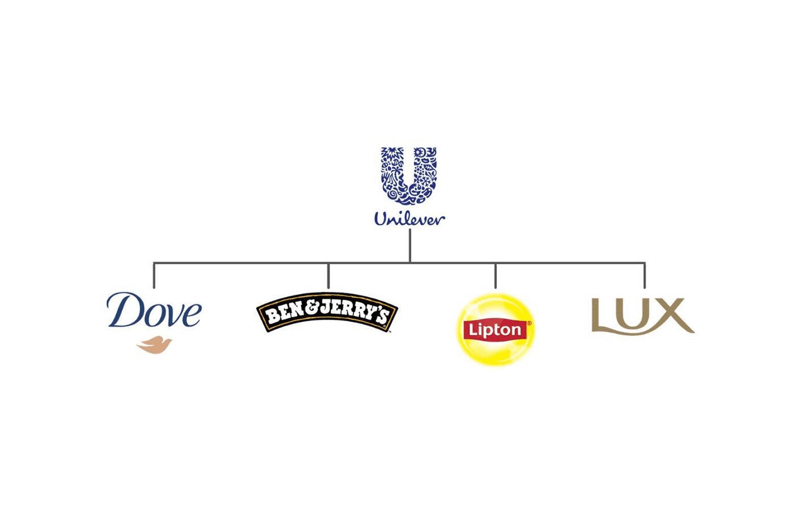 The parent company owns a portfolio of individual brands, each with its own identity, audience, and strategy. The parent name might not even be public-facing.
