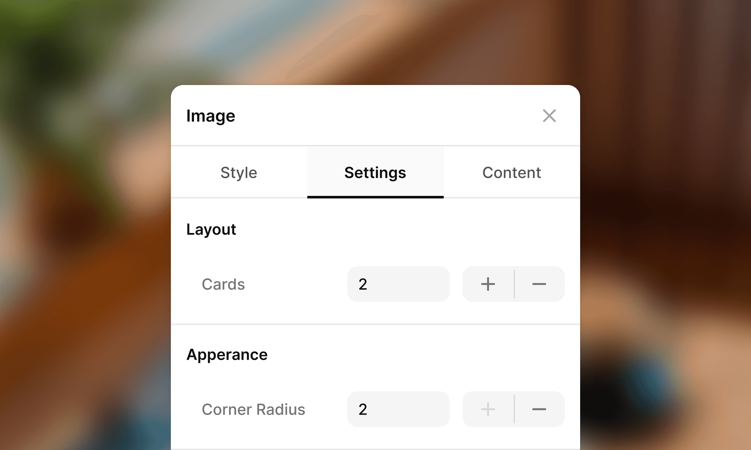 Edit: Open the block’s panel to update its Style, Settings, or Content.